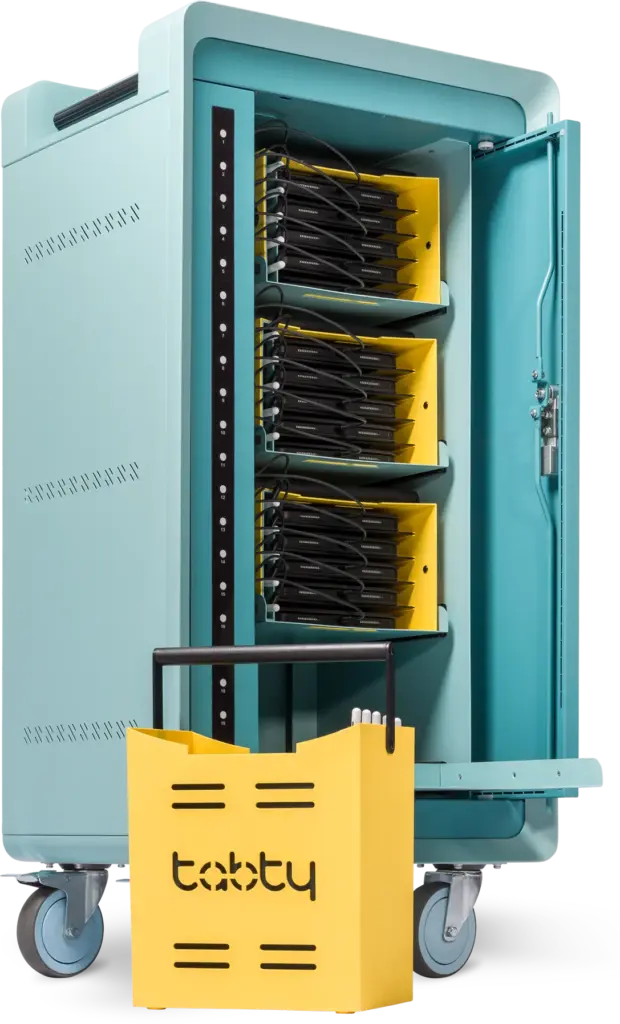 With over 10 years on the market and thousands of charging solutions sold, tabty products have established themselves as reliable companions for professional applications in the education sector. Developed and designed in Germany and partly manufactured locally, the solutions combine technical innovation, high-quality materials, and proven ergonomics in a well-thought-out overall concept. Developed for modern learning and working environments, tabty solutions impress with their high suitability for everyday use, intelligent safety features, and robust, durable construction – designed for professional continuous use.